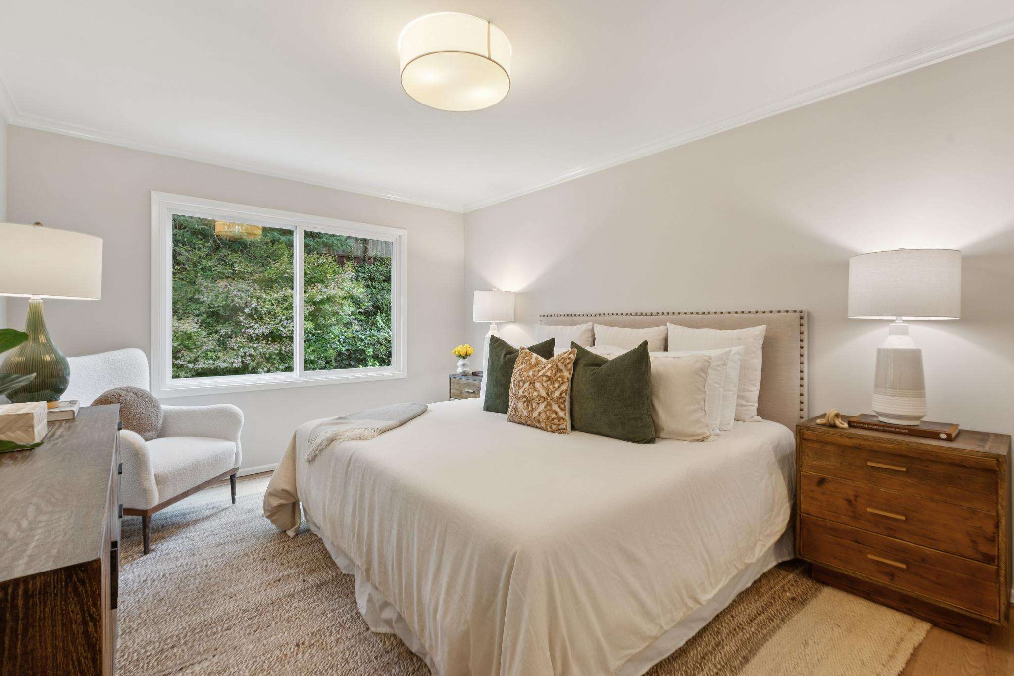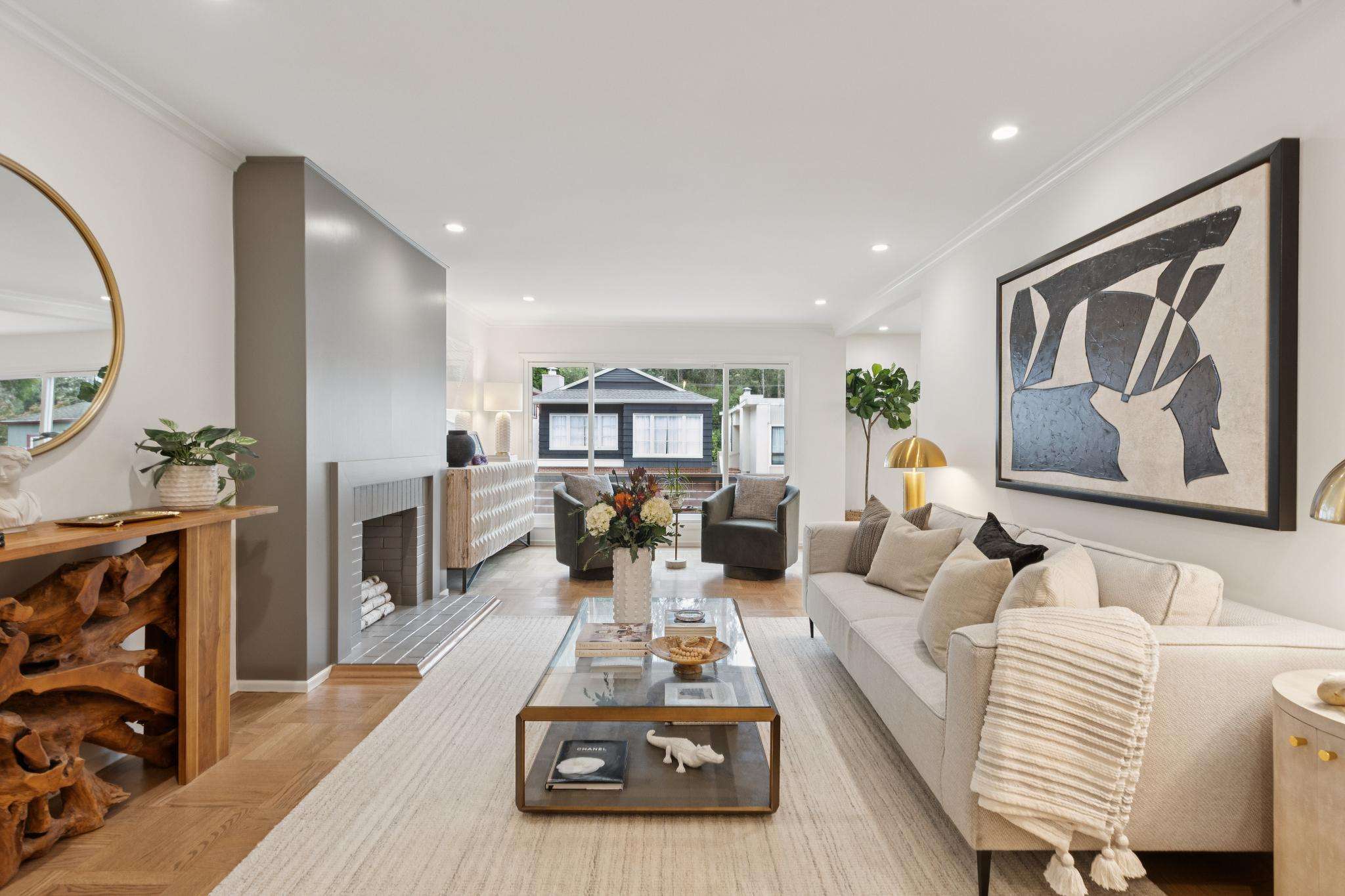 Tucked away at the end of a quiet cul-de-sac in the coveted Forest Knolls neighborhood, this stunning mid-century modern home offers a rare combination of privacy, modern comfort, and natural beauty—all in the heart of San Francisco. Surrounded by lush greenery with views of Sutro Tower, this residence is a peaceful urban retreat with exceptional convenience.